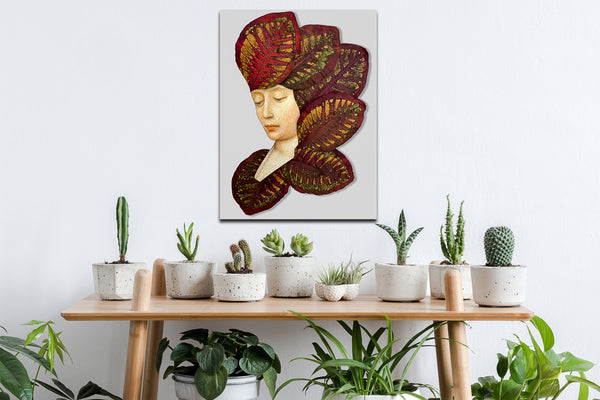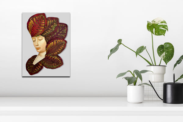 These leaves are from my Grace Smoke Tree. The face is from Rogier Van der Weyden’s The Magdalen Reading. The leaves alone are an inspiration (see photo).