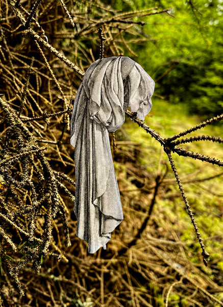 From the series, Norton Island Visions, created during an artists' residency in Maine's uninhabited Norton Island. I wandered the enchanted island daily with my leftover collage cut-outs, giving them new life by photographing dramatic scenes I discovered in the trees and rocks. I love low-tech; so the directness of these photographic adventures was a joy. The images are my souvenirs of that dreamy world.