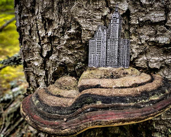 From the series, Norton Island Visions, created during an artists' residency in Maine's uninhabited Norton Island. I wandered the enchanted island daily with my leftover collage cut-outs, giving them new life by photographing dramatic scenes I discovered in the trees and rocks. I love low-tech; so the directness of these photographic adventures was a joy. The images are my souvenirs of that dreamy world.