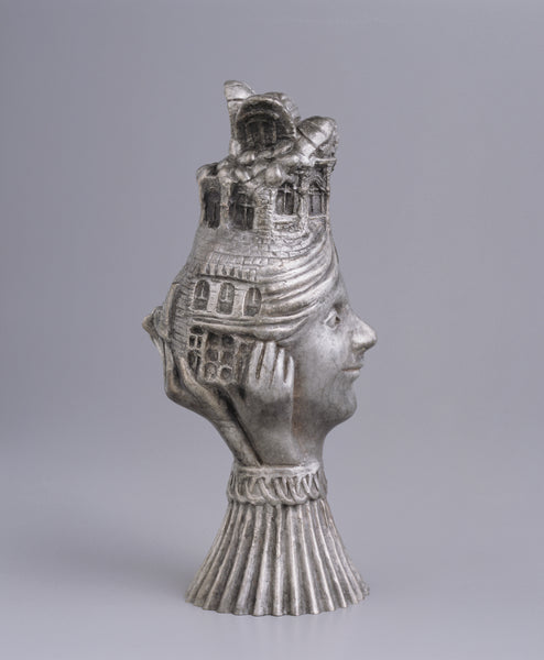 This mini-bust embodies the spirit of growing and building. Hands supporting architecture become hair that flows into a temple that is part plant, sprouting from the top of the head.