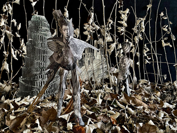 During the darkening days of November 2020, I photographed dying leaves combined with collage bits in an unplanned way. The resulting images narrated my feelings of loss over the past year.