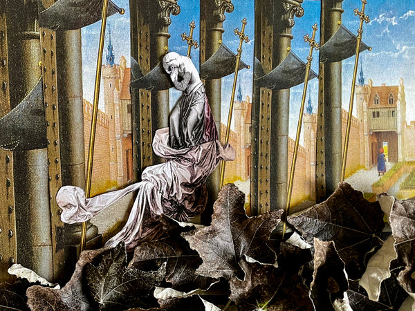 During the darkening days of November 2020, I photographed dying leaves combined with collage bits in an unplanned way. The resulting images narrated my feelings of loss over the past year.